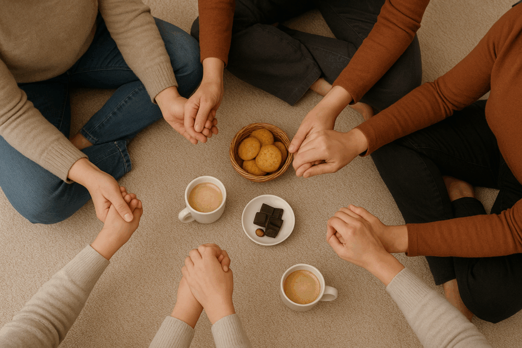 Cada 2 viernes abrimos un círculo íntimo y seguro donde puedes preguntar, llorar, reír, desahogarte o simplemente escuchar, mientras compartimos una merienda rica y reconfortante. Un espacio para ser tú, con tus luces y tus sombras, acompañada de otras madres que transitan el mismo camino.